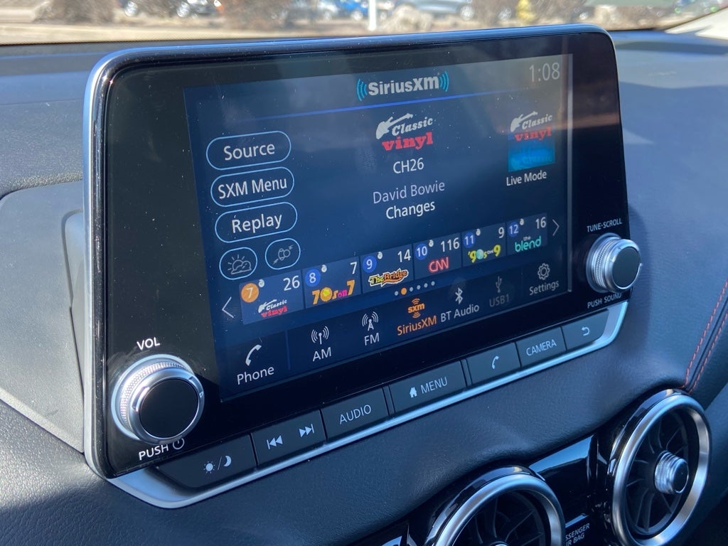 - Radio: AM/FM w/RDS/MP3/Aux-In -inc: 6 speakers plus 2 tweeters in A-pillar, 8" color display w/multi-touch control, streaming audio via Bluetooth®, Bluetooth® hands-free phone system, hands-free text messaging assistant, Siri Eyes Free, Google Assistant voice recognition w/Apple CarPlay and Android Auto, NissanConnect, (1) front USB connection port (type A), (1) additional front USB (type C), (1) charge-only USB (type A) center console and SiriusXM radio w/advanced audio features
