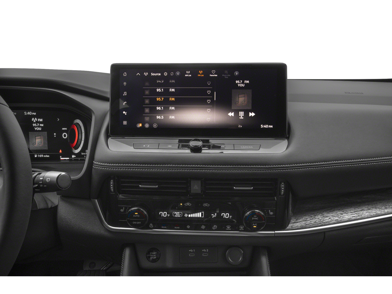 - Radio: AM/FM NissanConnect w/Navigation -inc: SiriusXM 360L, hybrid radio, enhanced voice recognition (one shot VDE, natural language understanding), Active Noise Cancellation, wireless Apple CarPlay, wireless Android Auto, 12.3" color HD display, Bluetooth®, 2 front USB type-C, Wi-Fi hotspot, Alexa Built-In, Google built-in: Google Assistant, Play Store, maps, data, NissanConnect Services powered by SiriusXM, SiriusXM Traffic and SiriusXM Travel Link