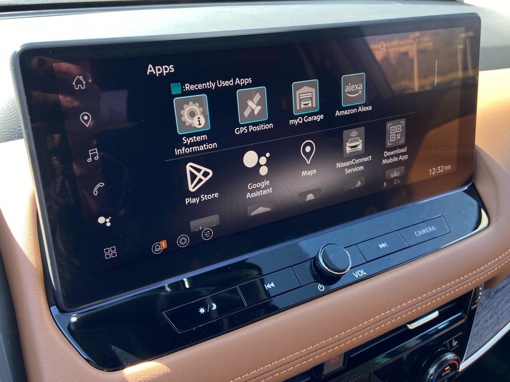 - Radio: AM/FM NissanConnect w/Navigation -inc: SiriusXM 360L, hybrid radio, enhanced voice recognition (one shot VDE, natural language understanding), Active Noise Cancellation, wireless Apple CarPlay, wireless Android Auto, 12.3" color HD display, Bluetooth®, 2 front USB type-C, Wi-Fi hotspot, Alexa Built-In, Google built-in: Google Assistant, Play Store, maps, data, NissanConnect Services powered by SiriusXM, SiriusXM Traffic and SiriusXM Travel Link